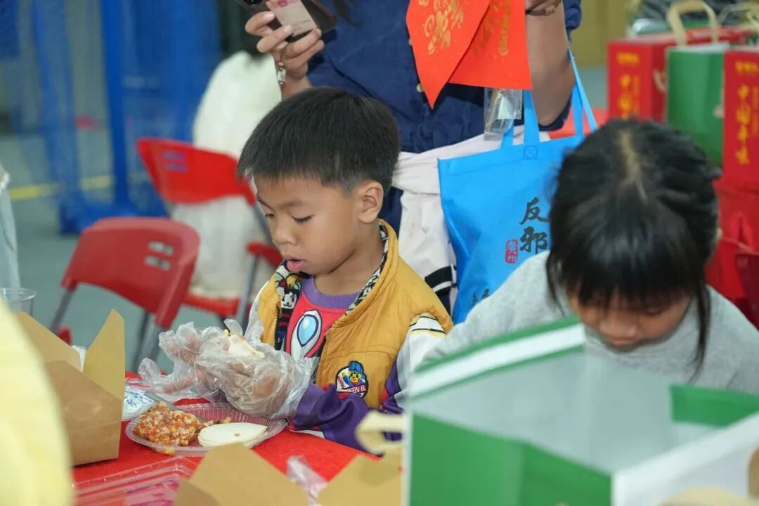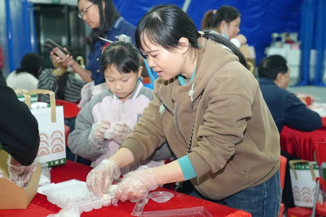 包饺子摊位上,职工们围坐在一起体验着独属中国传统节日的仪式感,揉面、擀皮、包馅,动作娴熟又不乏趣味,一个个饱满的饺子承载着大家对新年的美好期许,也传递着万顷沙对企业职工的真挚祝福。