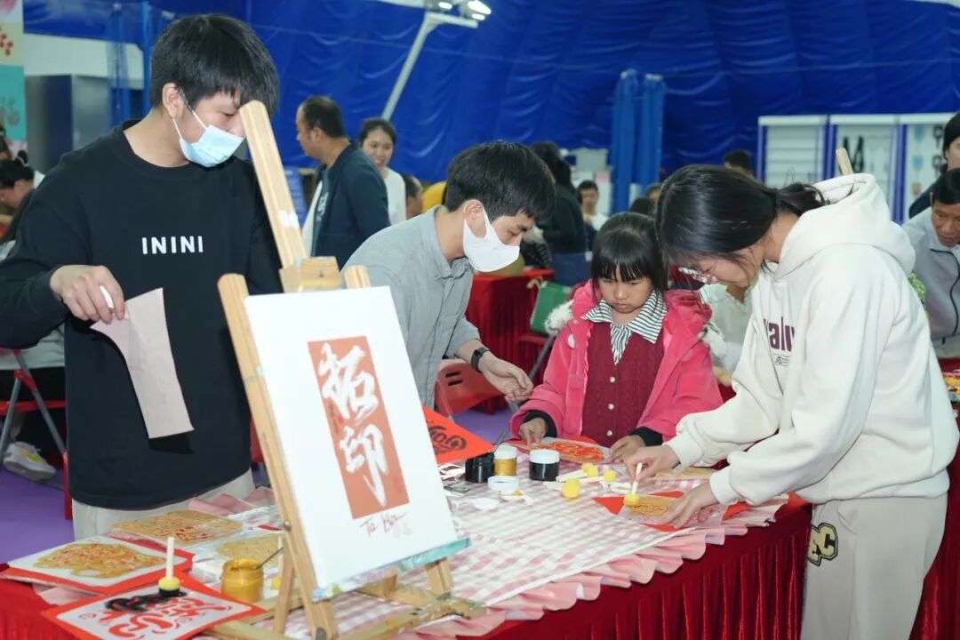 拓印摊位一经开启便吸引众多职工踊跃参与,在老师指导下,大家铺纸施墨、亲手拓印,在一压一印间感受传统民俗的魅力。