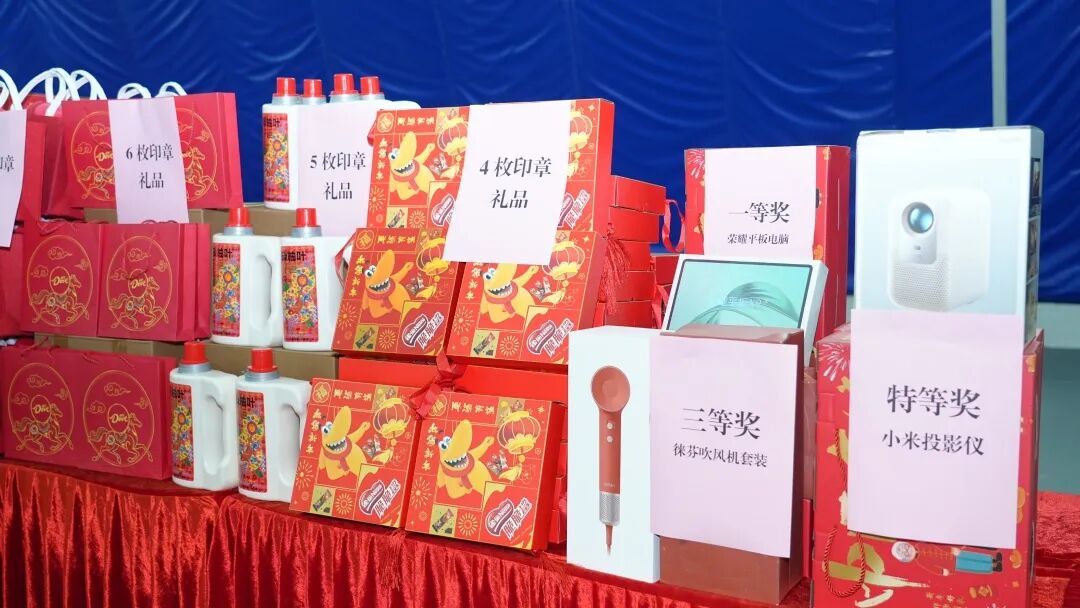 礼品兑换及抽奖区更是将游园会的氛围推向高潮,职工们手持打卡印章,兑换着年味礼盒、办公室四件套等精美实用礼品,每一位参与者都收获满满。